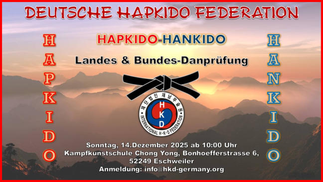 Am 03.10.2021 fand die Bundes-und Landesdanprüfung im Hapkido-Hankido bei der Deutschen Hapkido Federation in Eschweiler statt.